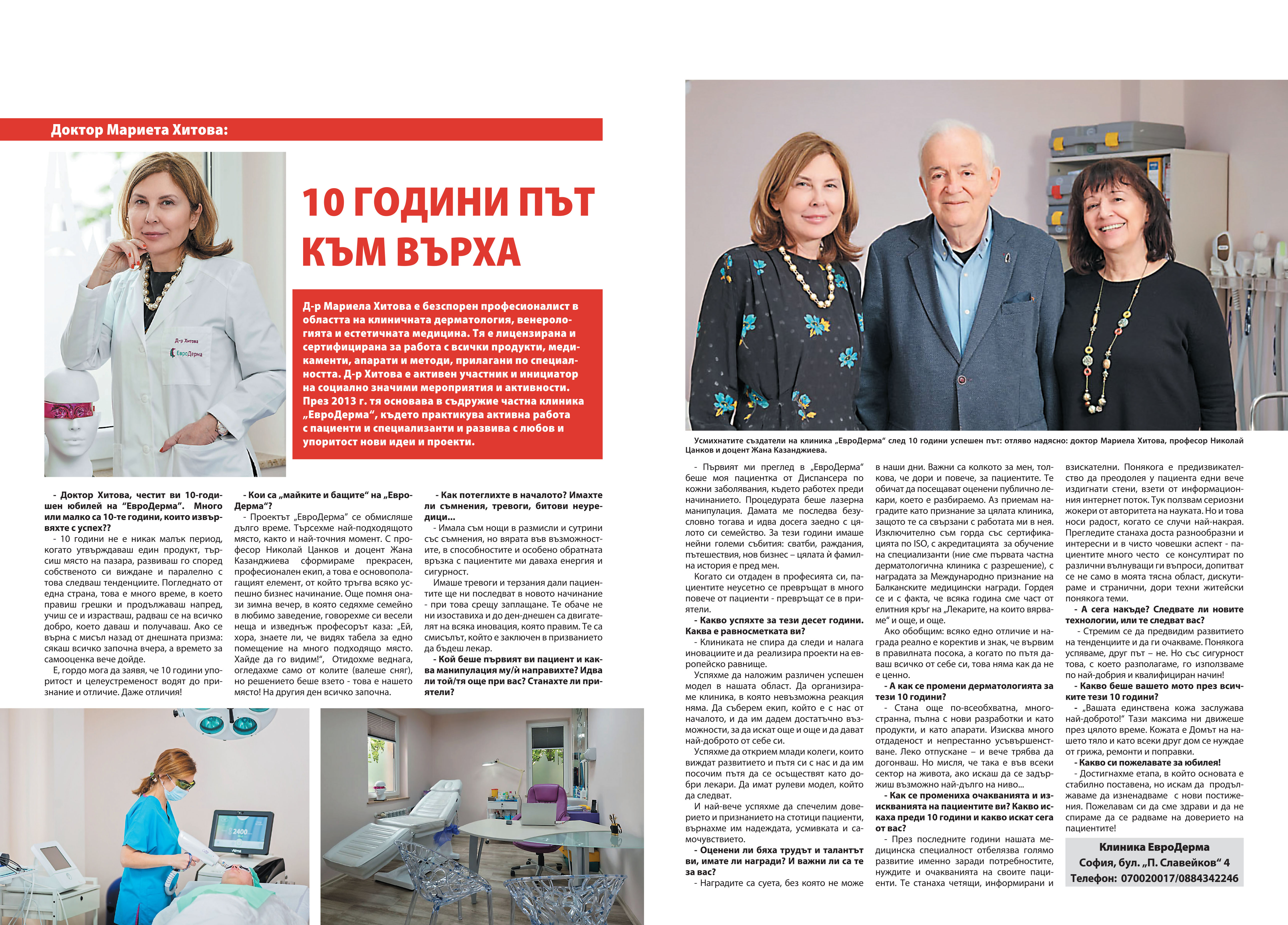 Тези и други въпроси може да прочетете в интервюто с д-р Мариела Хитова, озаглавено “10 години път към върха!”.