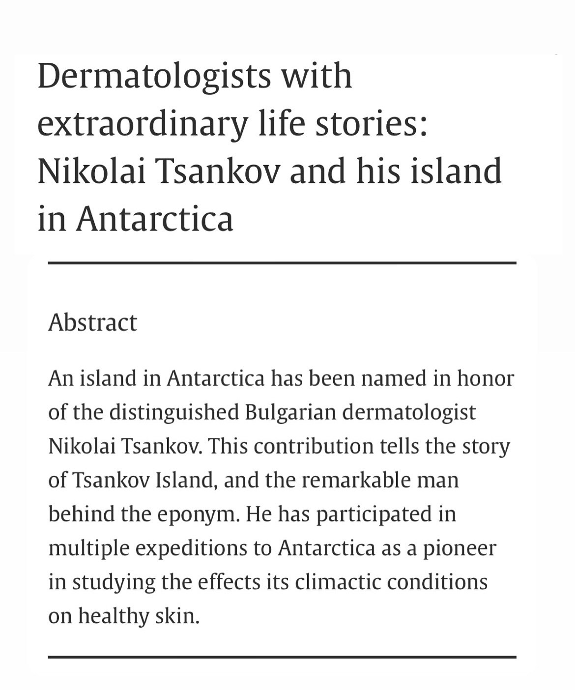 Едно от най-елитните дерматологични списания в САЩ публикува статия “Дерматолози с необичайна история на живота”, посветена на един от съоснователите на Клиника ЕвроДерма - Проф. Николай Цанков и неговия остров в Антарктика.